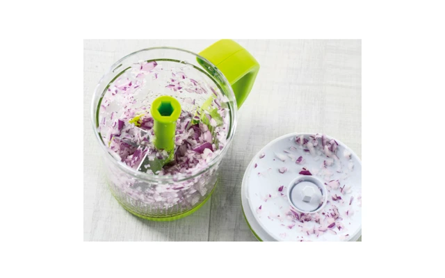 Dank dem ultra-scharfen 5-Klingen-Messereinsatz werden selbst harte Lebensmittel wie z.B. Nüsse oder Parmesankäse im Handumdrehen zerkleinert.