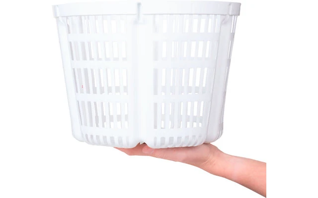Nach dem Waschen einfach den Griff drehen – dadurch wird die Wäsche geschleudert und verliert die gesamte Feuchtigkeit, die dank des Ausgusses auch schnell abgegeben werden kann.